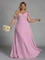 This A-line bridesmaid dress features a modern cold shoulder design with sleeveless straps, adding a stylish and airy touch. Crafted from soft chiffon with elegant pleats, it offers graceful movement and texture. The corset bodice shapes the waist, while the floor-length skirt creates a flattering and sophisticated silhouette-perfect for plus size bridal parties.
