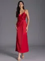 • Modest A-line Spaghetti Straps Pleated Ankle-Length Charmeuse Bridesmaid Dress