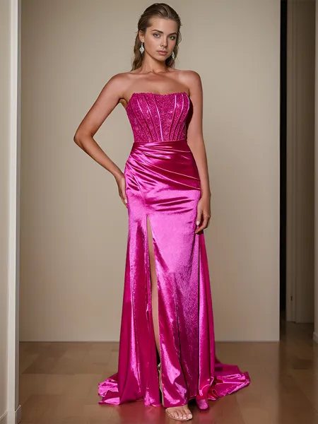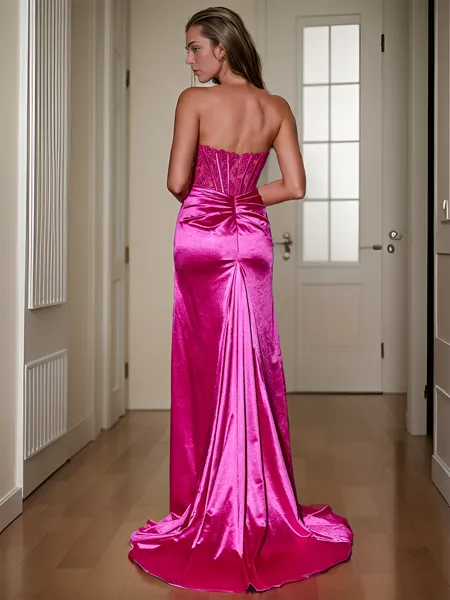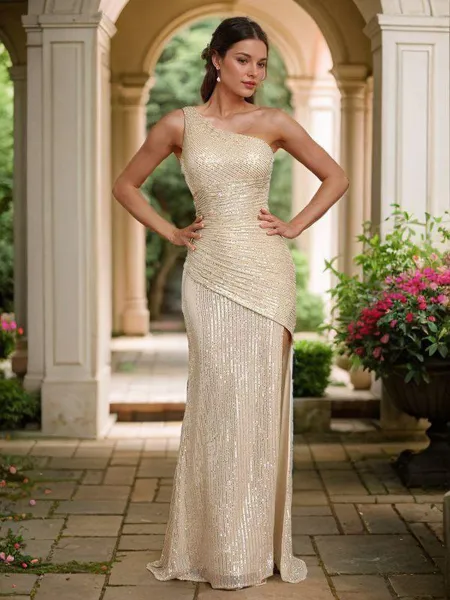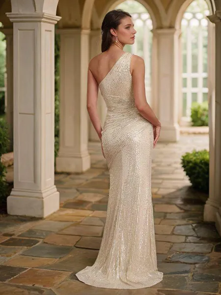 Sheath/Column Alluring Cold Shoulder Floor-Length Silk like Satin Bridesmaid Dress With Pleated $114.00
