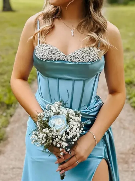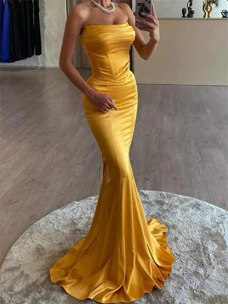 Aristocratic Sheath Sweetheart Pleated Court Train Metallic Satin Corset Prom Dress $142.00 $275.00 (1)