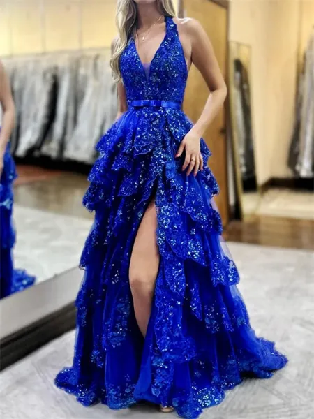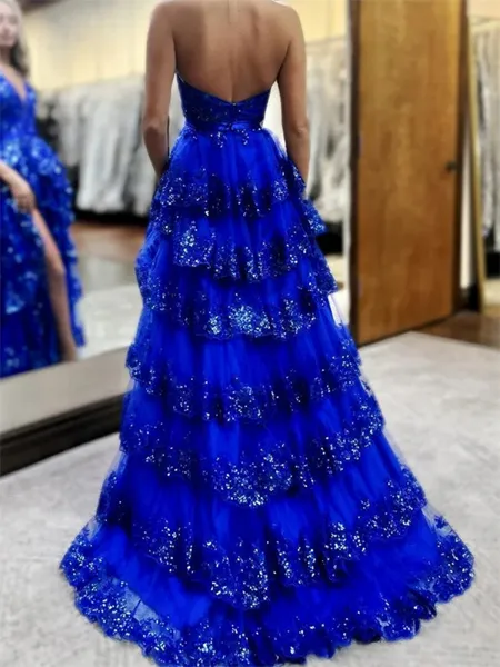 Splendiferous A-line Spaghetti Straps Cascading Ruffles Sweep Train Silk Like Satin Prom Dress $145.00 (2)