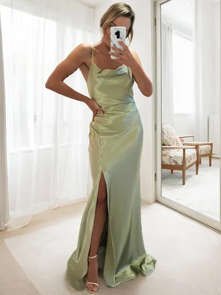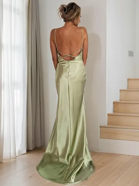 Sheath/Column Spaghetti Straps Confident Sleeveless Sweep Train Silk like Satin Prom Dress NZ$212.16 (3)