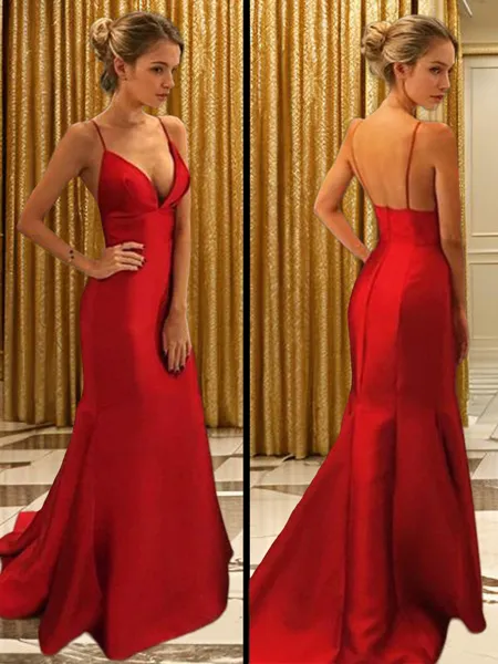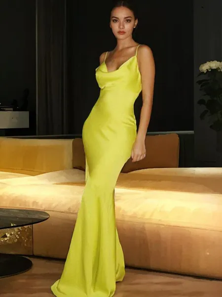 Sheath/Column Spaghetti Straps Body-contouring Sleeveless Sweep Train Silk like Satin Prom Dress NZ$180.96 (4)