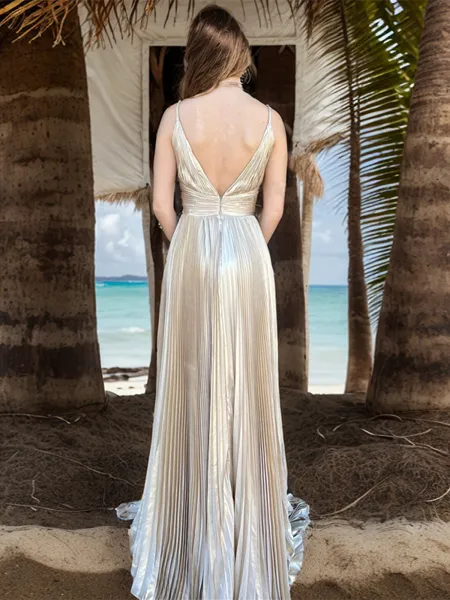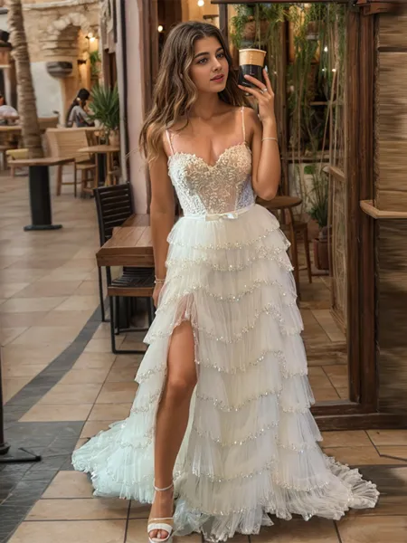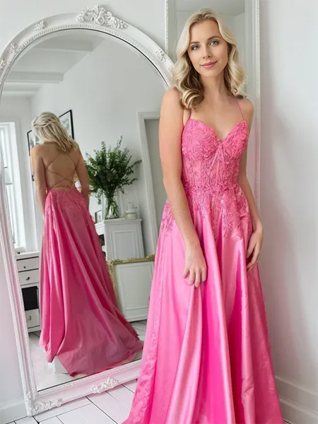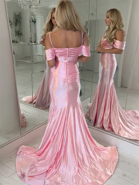 Sheath/Column Chic Spaghetti Straps Sweep Train Silk Like Satin Corset Prom Dress With Slit NZ$213.72 NZ$425.88 (5)