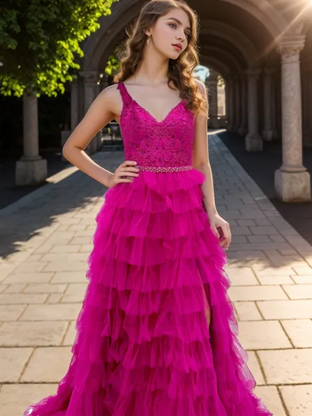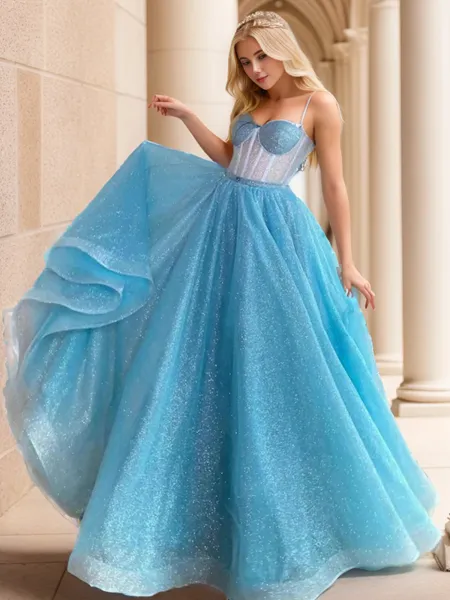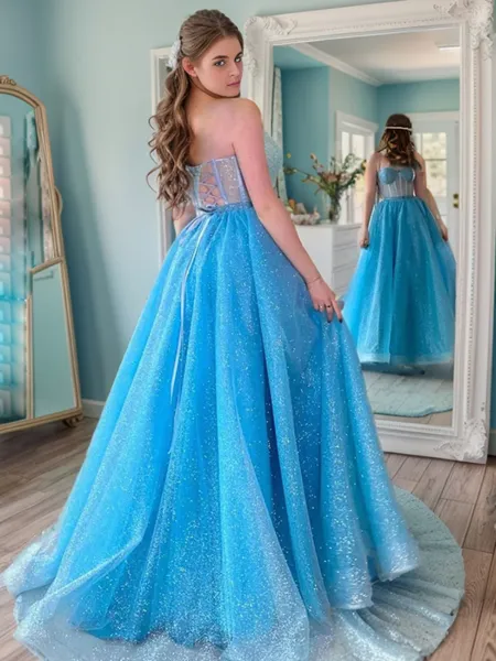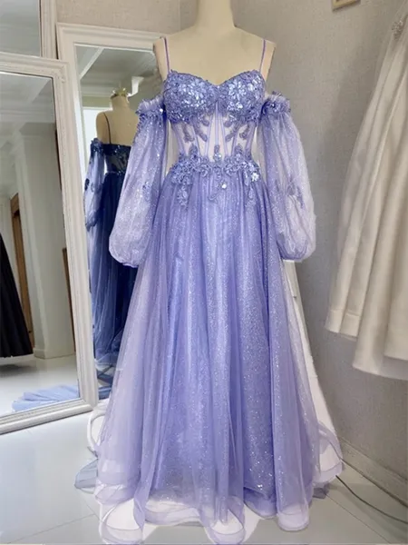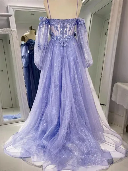 Princess A-line Tulle One-Shoulder Long Sleeves Sweep Train Corset Prom Dress With Slit NZ$213.72 (1)