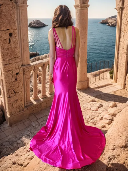 Sheath/Column Glamourous One-Shoulder Silk like Satin Sweep Train Prom Dress With Slit NZ$193.44 NZ$363.48 (6)