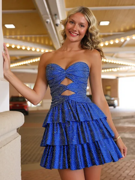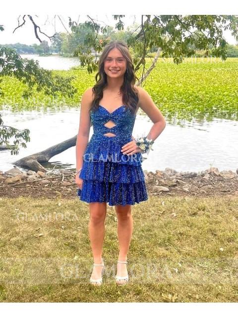 A-line Glam Straps Tulle Corset Tea-Length Homecoming Dress With Cascading Ruffles $120.00 $235.00 (1)