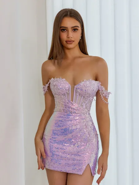 Sheath/Column Timeless Straps Silk like Satin Corset Short/Mini Homecoming Dress With Appliques Lace $127.00 (1)