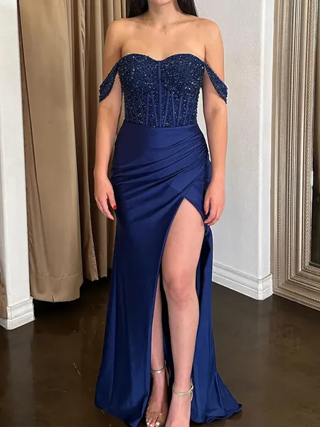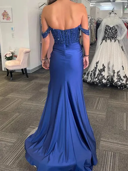 Mesmerizing A-line Off-the-Shoulder Appliques Lace Court Train Tulle Corset Prom Dress €158.40 €319.50 (2)