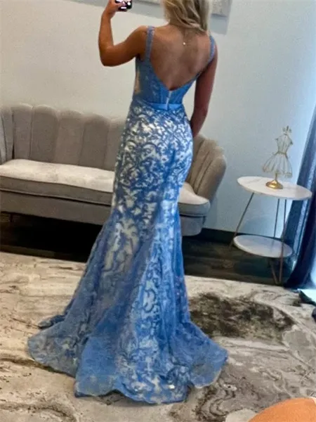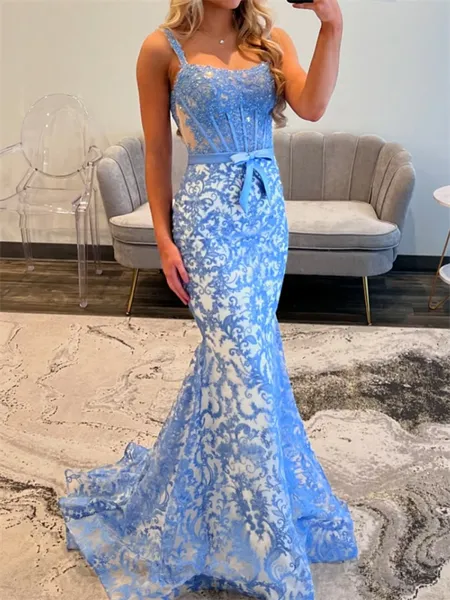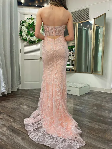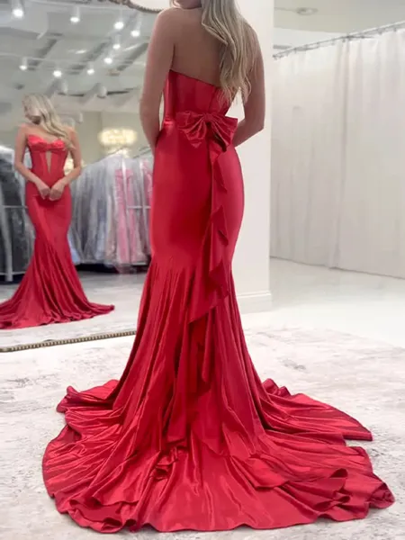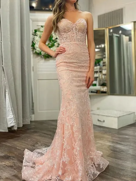 Exquisite Mermaid Sweetheart Appliques Lace Sweep Train Silk Like Satin Corset Prom Dress $239.00 $504.00