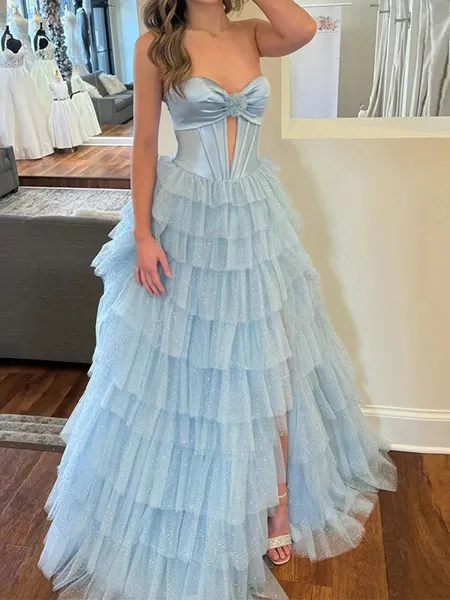 Enchanting A-line Sweetheart Long Sleeves Appliques Lace Sweep Train Tulle Corset Prom Dress R3,717.32 R10,927.80 (1)