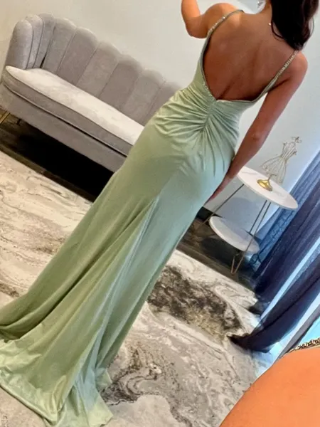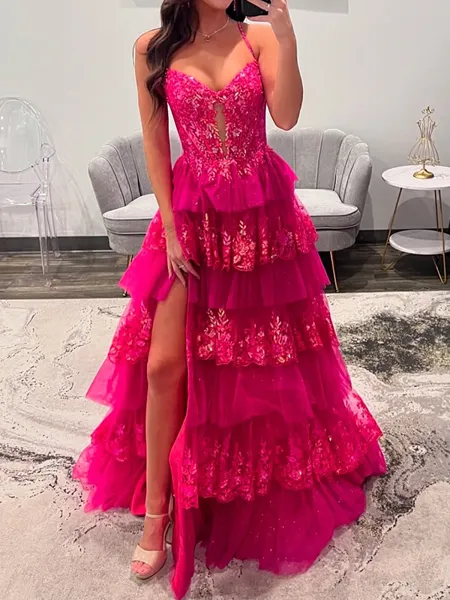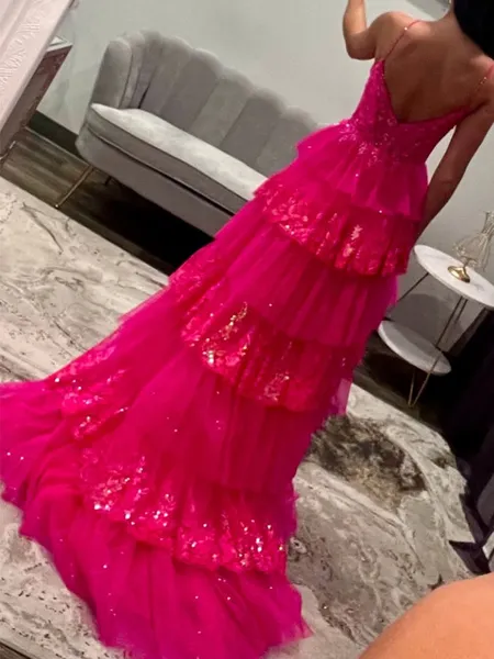 Splendiferous A-line Spaghetti Straps Cascading Ruffles Sweep Train Silk Like Satin Prom Dress CHF137.27 (2)