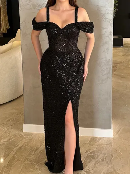 Flattering Sheath/Column Long Sleeves Off-the-Shoulder Sweep Train Evening Dress With Slit $131.00 (1)