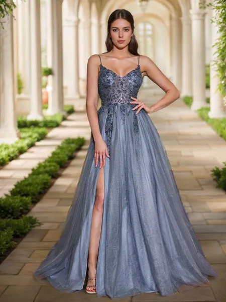 Sheath/Column Alluring Spaghetti Straps Sweep Train Silk like Satin Corset Evening Dress With Slit R2,260.28 R4,427.16