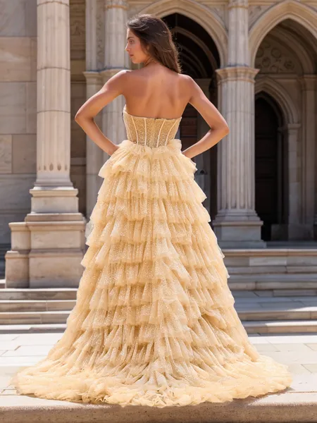 A-line Princess V-neck Metallic Satin Short/Mini Homecoming Dress With Cascading Ruffles $117.00 $229.00 (4)