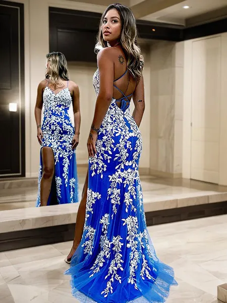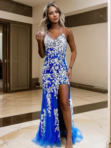 Elegant Sheath Spaghetti Straps Appliques Lace Floor-Length Corset Prom Dress ¥1,093.01 ¥1,632.22 (2)