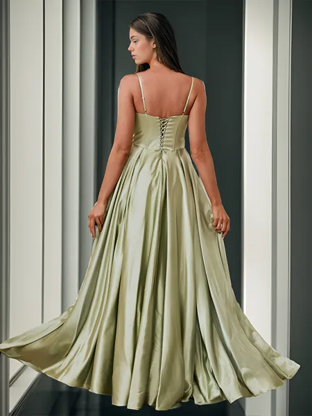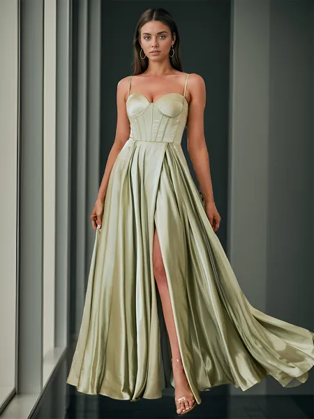 Sheath/Column Straight-cut Spaghetti Straps Floor-Length Silk like Satin Corset Prom Dress With Slit $120.00 $235.00 (12)
