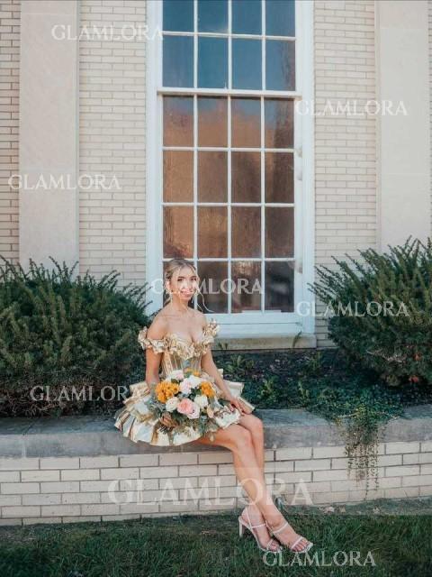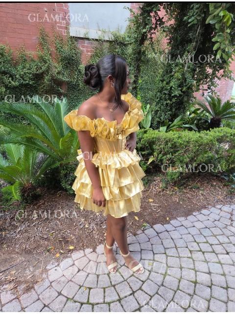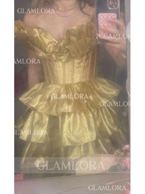 • Off-the-Shoulder A-line Stunning Cascading Ruffles Short/Mini Corset Homecoming Dress