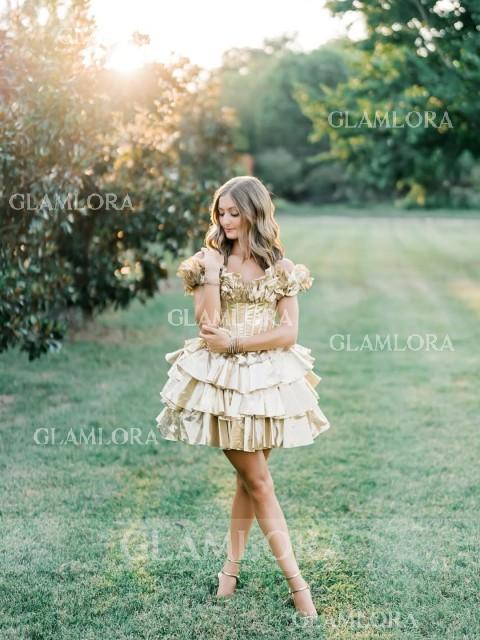 Off-the-Shoulder A-line Stunning Cascading Ruffles Short/Mini Corset Homecoming Dress - Glamlora