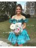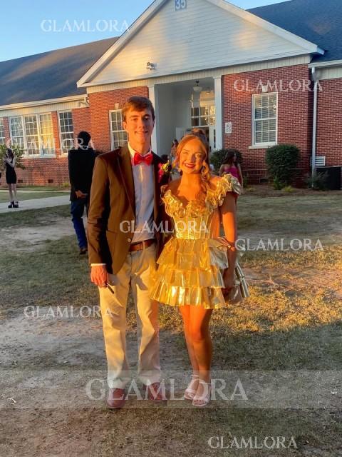 Off-the-Shoulder A-line Stunning Cascading Ruffles Short/Mini Corset Homecoming Dress