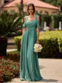 • Opulent A-line Cold Shoulder Pleated Floor-Length Chiffon Bridesmaid Dress