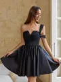 This ball gown features a stylish one-shoulder neckline and sleeveless design. Made from smooth satin with elegant pleated details, it offers texture and sophistication. The corset bodice shapes the waist, while the short/mini length creates a playful yet glamorous silhouette - perfect for formal events and parties.