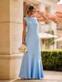 A sleek sheath bridesmaid dress with a scoop neckline and sleeveless design. Made from luxurious charmeuse fabric, this floor-length dress offers a smooth, shiny finish that enhances its figure-flattering silhouette. The pleated details add texture and sophistication, making it an ideal choice for an elegant and timeless wedding look.