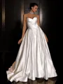 This ball gown wedding dress features a flattering sweetheart neckline and sleeveless design, with elegant pleating that adds texture and volume to the skirt. Crafted from luxurious satin, the dress creates a smooth, radiant look, while the chapel train offers a dramatic and sophisticated finish. Perfect for a bride seeking a classic, regal appearance on her special day.
