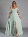 • Perfect A-line Cold Shoulder Floor-Length Chiffon Convertible Plus Size Bridesmaid Dress