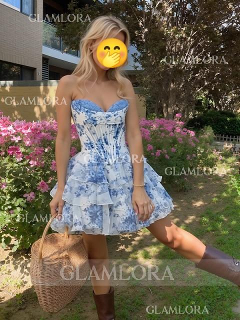Perfect A-line Sweetheart Cascading Ruffles Chiffon Short/Mini Corset Homecoming Dress - Glamlora