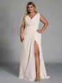 • Perfect Sheath Cowl Pleated Floor-Length Chiffon Corset Plus Size Bridesmaid Dress