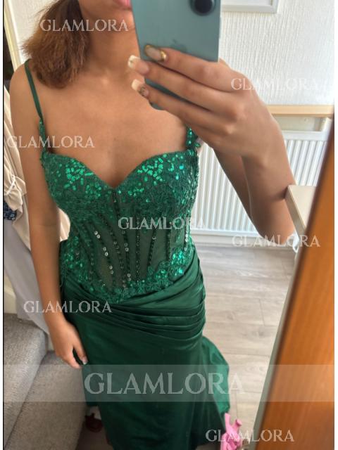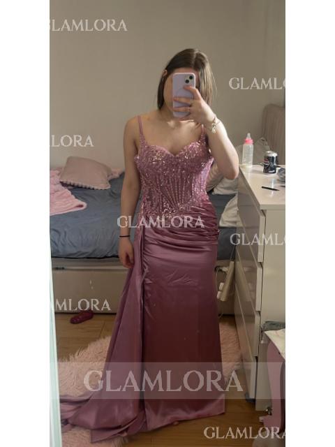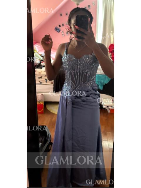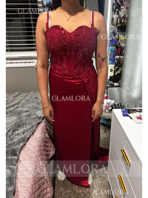 The one-piece design includes a built-in padded bra that offers secure, seamless support without the need for additional undergarments. Adjustable spaghetti straps fit various body types, reducing pressure and preventing strap marks. The Glamlora sweep train corset dress is made from premium heavyweight satin, ensuring a smooth drape and structured fit. Internal herringbone tape along the waistline flattens the stomach and lifts the hips without discomfort. The subtle back train is suitable for daily wear with heels or for formal events such as weddings and parties.