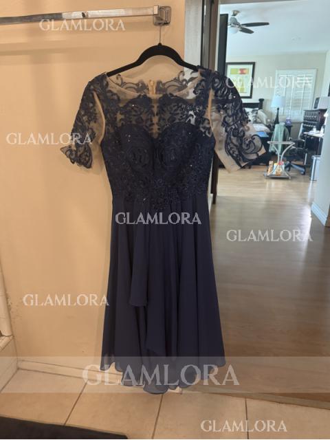 • Polished A-Line Chiffon Applique Bateau 1/2 Sleeves Tea-Length Mother of the Bride Dress