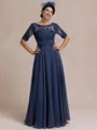 • Polished A-line Scoop 1/2 Sleeves Appliques Lace Floor-Length Chiffon Mother of the Bride Dress