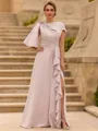 Polished A-line Scoop Short Sleeves Ruffles Floor-Length Stretch Crepe Corset Mother of the Bride Dress
