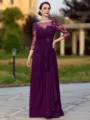 Polished Sheath Scoop 3/4 Sleeves Appliques Lace Floor-Length Chiffon Mother of the Bride Dress