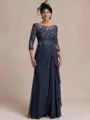 Radiant A-line Scoop 3/4 Sleeves Appliques Lace Floor-Length Chiffon Mother of the Bride Dress