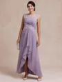 • Radiant A-line Scoop Appliques Lace Asymmetrical Chiffon Mother of the Bride Dress