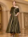 An elegant A-line Mother of the Bride dress featuring short sleeves and delicate pleating that adds texture and movement. Made from silk like satin, it offers a smooth and flattering fit. The ankle-length silhouette provides a refined and sophisticated look, making it an ideal choice for a stylish and memorable appearance on the special day.