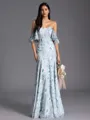 • Radiant Sheath Off-the-Shoulder Short Sleeves Floor-Length Bridesmaid Dress