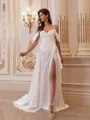 • Refined A-line Cold Shoulder Pleated Court Train Charmeuse Wedding Dress