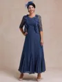 • Refined A-line Scoop Appliques Lace Ankle-Length Chiffon Mother of the Bride Dress