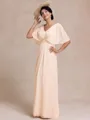 • Refined A-line V-Neck 1/2 Sleeves Pleated Floor-Length Chiffon Mother of the Bride Dress
