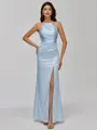 This elegant sheath dress features a halter neckline and sleeveless design, perfect for a sophisticated look. The pleated detailing adds texture and movement, while the floor-length cut ensures a graceful silhouette. Made from silk like satin, it offers both comfort and a luxurious finish.