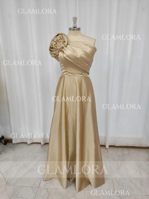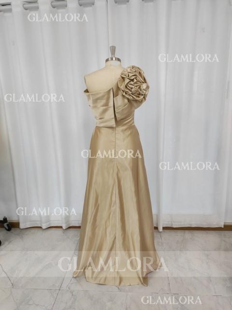This stunning A-line dress features a sleeveless design that elegantly showcases the shoulders. Crafted from smooth satin, the floor-length skirt flows gracefully, creating a classic and refined silhouette. Delicate floral embellishments add a romantic and feminine touch, while the corset-style bodice provides a flattering, structured fit. Perfect for the mother of the bride, this dress combines timeless elegance with modern charm for a memorable occasion.