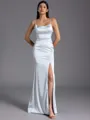 Regal Sheath Spaghetti Straps Floor-Length Silk Like Satin Bridesmaid Dress