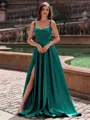 Resplendent A-line Straps Floor-Length Satin Prom Dress - Glamlora