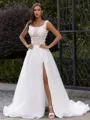 • Rhythmic A-Line/Princess Organza Applique Straps Sleeveless Sweep/Brush Train Wedding Dress