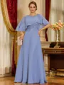 • Rhythmic A-line Scoop 1/2 Sleeves Appliques Lace Floor-Length Chiffon Corset Mother of the Bride Dress