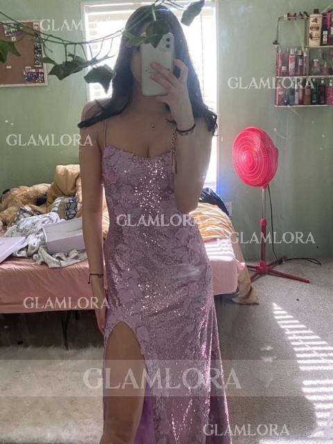 Sheath/Column Glam Spaghetti Straps Floor-Length Sequins Prom Dress With Slit #GLWH1623